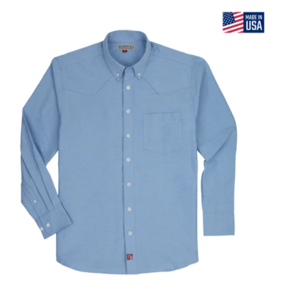 Resistol 1927 shirts are proudly, milled, cut and sewn in the USA. Each of our shirts is woven in a slightly thicker than average 4.5 oz Oxford cotton using a basket weave, giving it a checkerboard texture making it more durable as well as comfortable, easy to wash, with the ability to retain its shape better than other fabrics. Resistol 1927 shirts are offered in four solid classic colors, in a classic fit with a button-down collar in both a single patch pocket and sawtooth double pocket.