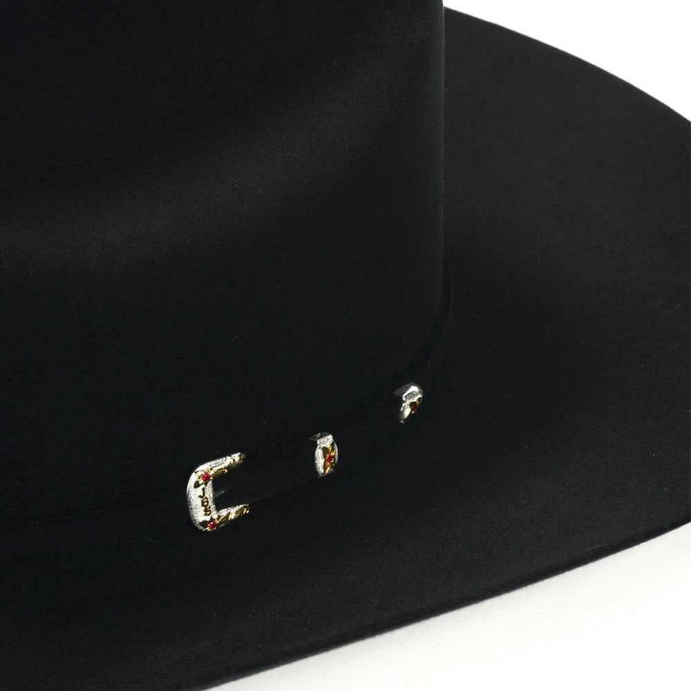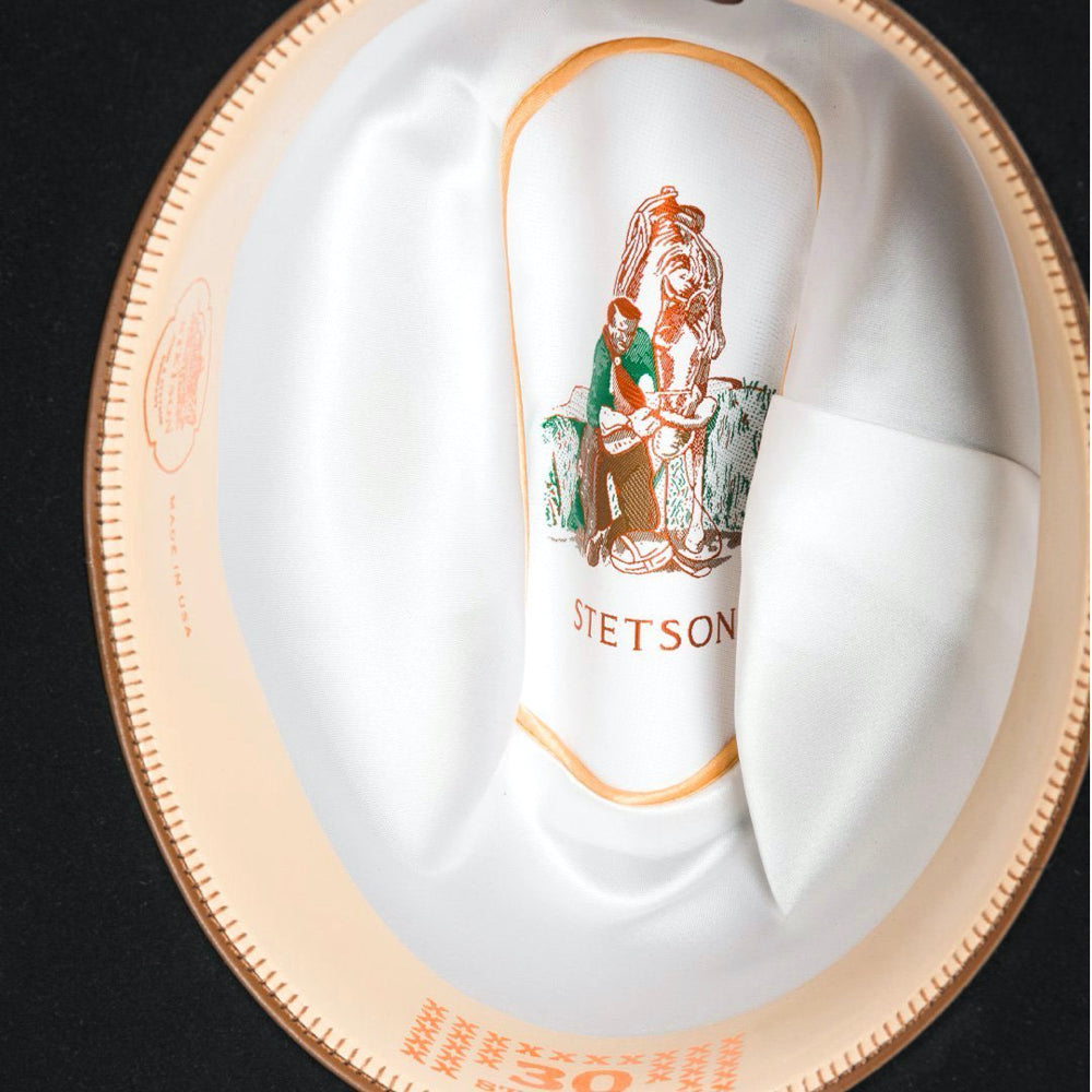 A true gentleman’s staple, the Stetson El Patron has a stately presence that’s hard to ignore. Impeccably crafted from luxurious 30X fur felt, it’s both remarkably soft and durable enough to last a lifetime of wear. The classic oval cattleman styling is accented by a subtle self-felt hatband, dyed the same color as the body of the hat. The hatband itself is set off by a sterling silver three-piece buckle inscribed with the initials of our legendary founder — John B. Stetson — and detailed with discreet gold overlay and inset stones. Inside, a satin liner and leather sweatband provide perfect comfort, whether you’ve spent all day on the range or city streets. Proudly made in the U.S.A., this is a hat that will see you through a lifetime of adventure.